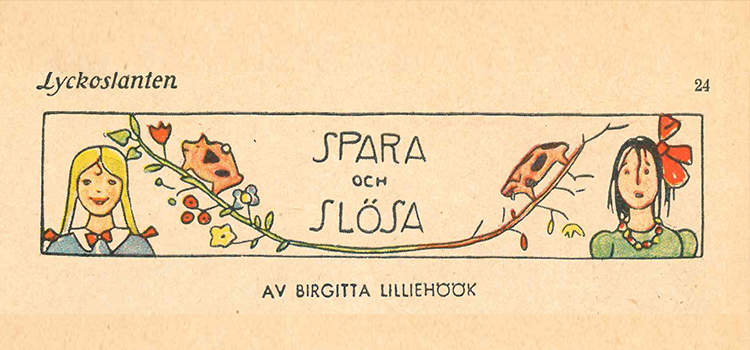 Serien om den präktiga och sparsamma Spara och den köplystna Slösa tecknades av Birgitta Lilliehöök mellan åren 1926-1963. Den var med redan i det allra första numret av Lyckoslanten som gavs ut på Världsspardagen, 31 oktober.